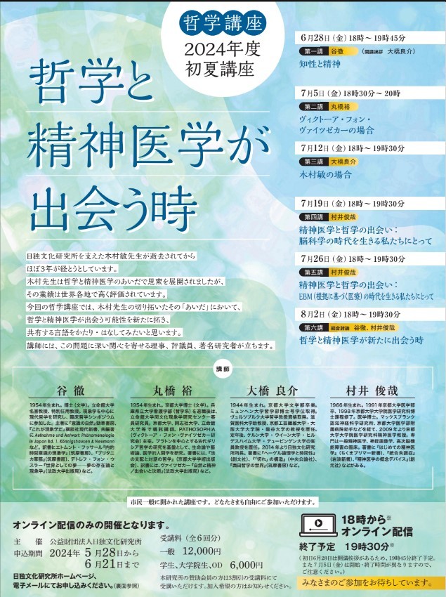 [開催終了] 哲学講座(2024初夏) 「哲学と精神医学が出会う時」