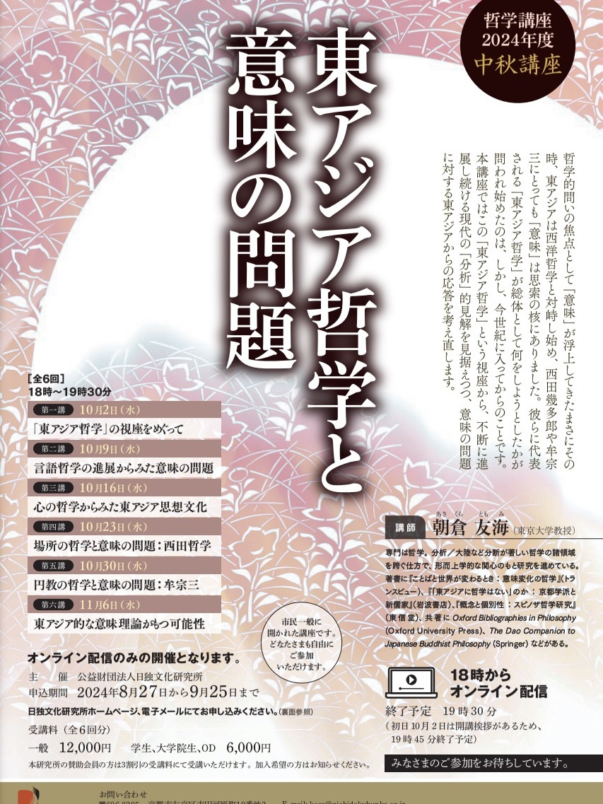 [開催終了] 哲学講座(2024中秋)「東アジア哲学と意味の問題」