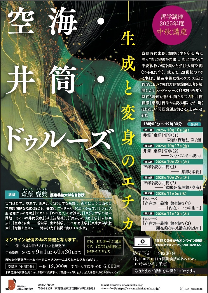 [開催終了] 哲学講座(2025中秋)「空海・井筒・ドゥルーズ — 生成と変身のエチカ」