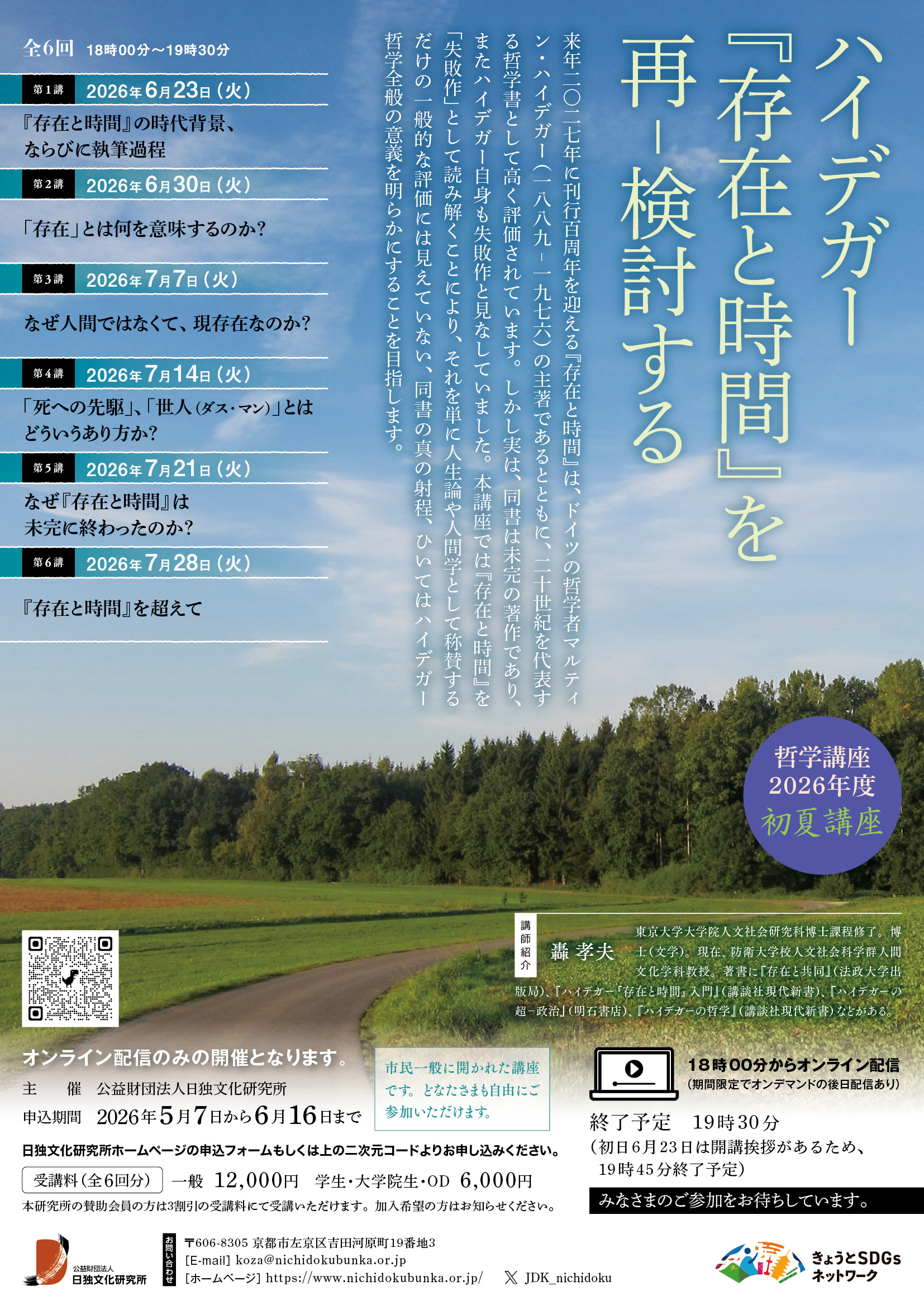 哲学講座2026年度初夏講座のお知らせ [2026/04/24]