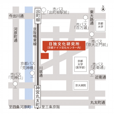 京都市バス205系統、59系統ほか 「荒神口」より東へ徒歩5分。