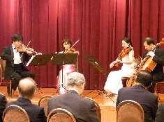 このあと、大橋先生からドイツでも有名な西田幾多郎の哲学についての講演と、モーツァルト室内管弦楽団カルテットの演奏が予定されており、本日の催しが大変興味深いものになること請け合いです。それだけに他の公務のために、すぐに退席せねばならないこと、私として残念であります。